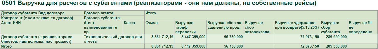 Раздел - 0501 Выручка для расчетов с субагентами (реализаторами - они нам должны)