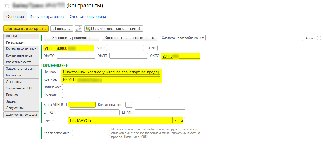 Карточка контрагента