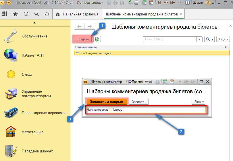 2. Далее "Шаблоны комментариев продажи билетов".