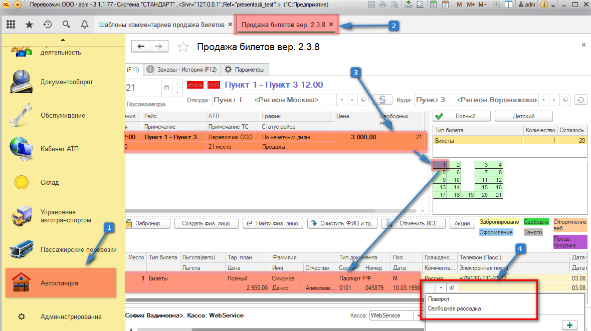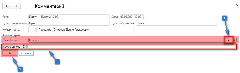 1. Если нас устраивает выбранный ранее шаблон комментария, то можем продать билет.