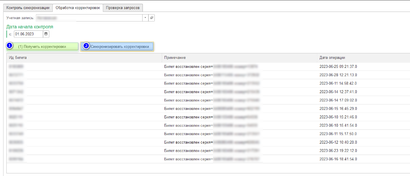 Рис 1. Пример обработки корректировок в контроле синхронизации данных