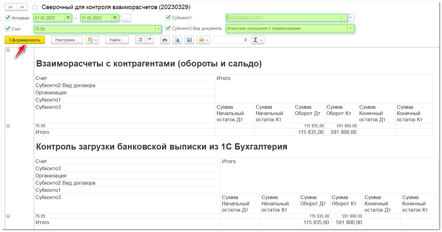Контроль соответствия данных АТП-СТАНДАРТ и 1С-Бухгалтерия Для контроля за переданными данными сформируем отчет. Меню Агентская деятельность - Отчеты - Ведомость расчетов (проводки) Заполните интервал. Укажите кор.счет. Нажмите Сформировать.