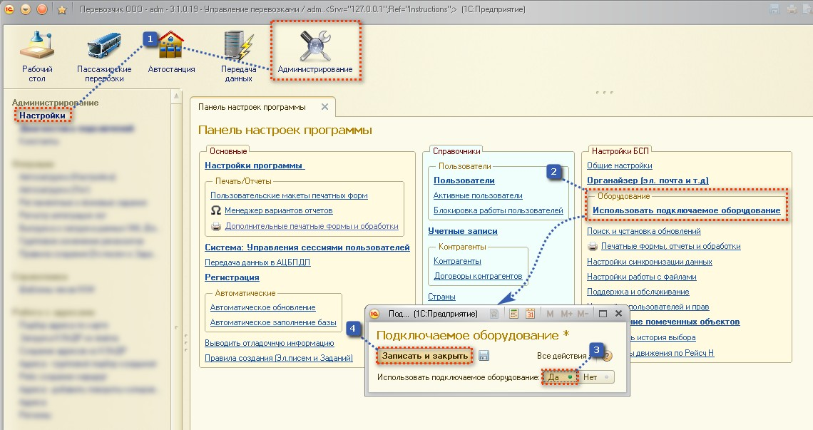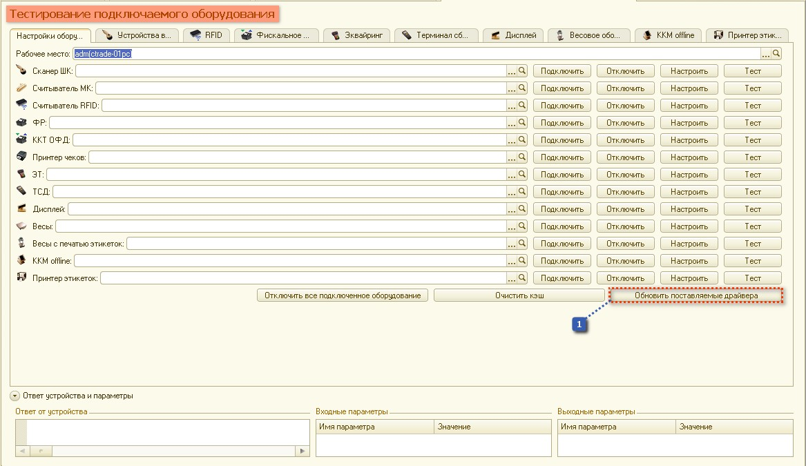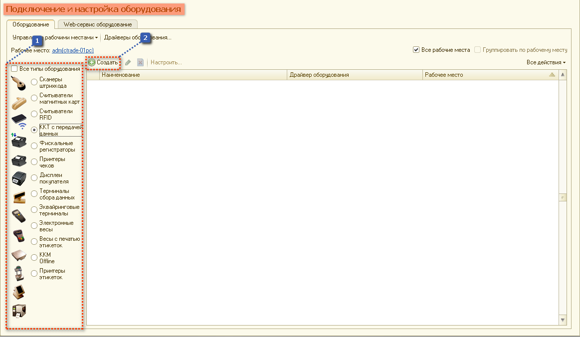 Настройка подключаемого оборудования (КАССА, ККМ)