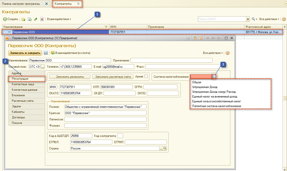 1) Открываем карточку контрагента.