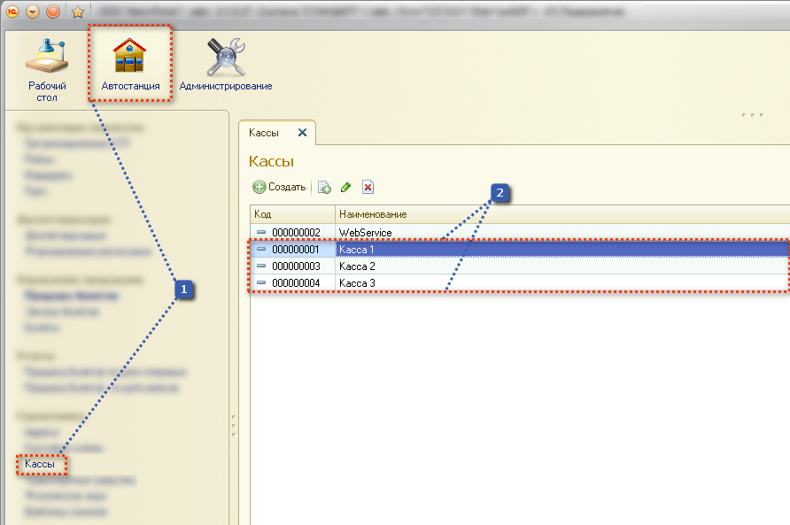 1) Заходим в "Автостанция" → "Кассы".