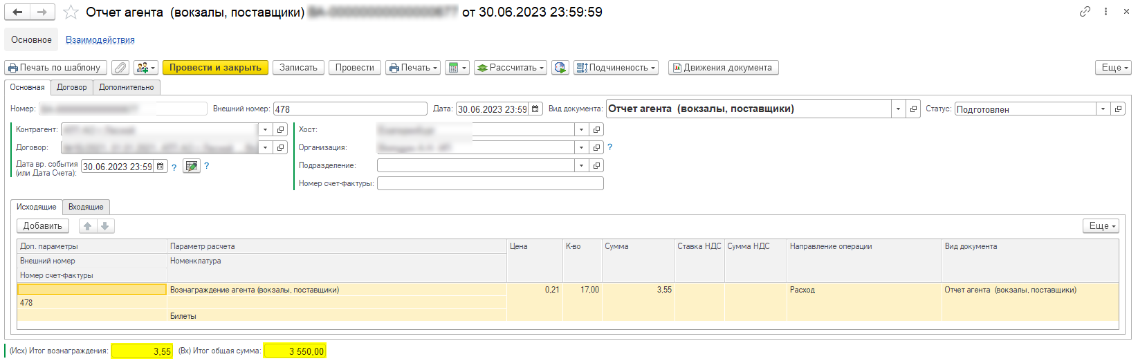 2) Агентская деятельность - Документы - Ведомость расчетов (проводки) - 76.12