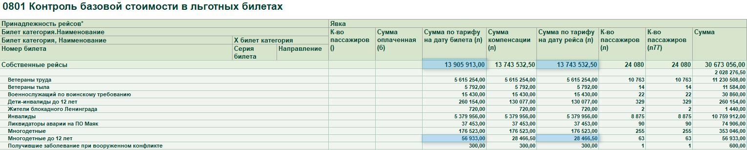 0801 Контроль базовой стоимости в льготных билетах