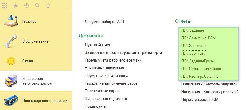 Отчеты по ПЛ Меню Управление Автотранспортом - Отчеты В системе имеется набор отчетов по путевым листам. В отчете необходимо указать Период и нажать кнопку Сформировать.