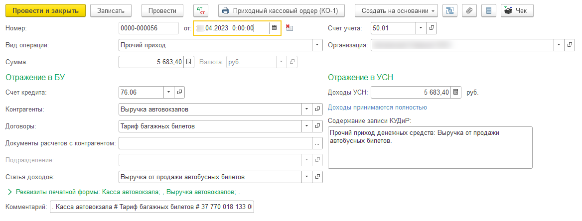 Откройте документы, проверьте правильность заполненных данных. Проведите и закройте.