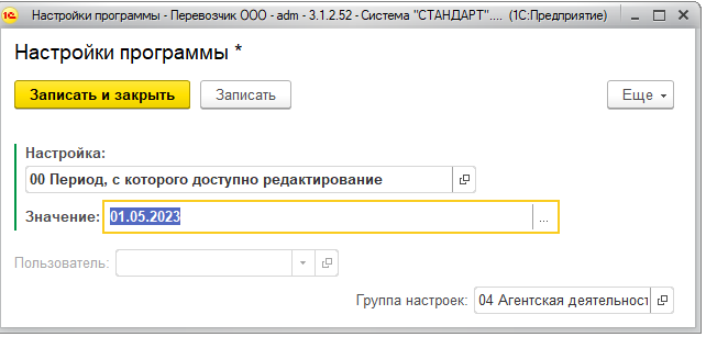 В системе «АТП-СТАНДАРТ» меню «Агентская деятельность» - Настройки - Оперативный период - задается граничная датаархивных неизменных данных до которого нельзя править (не включительно).
