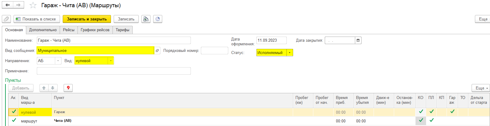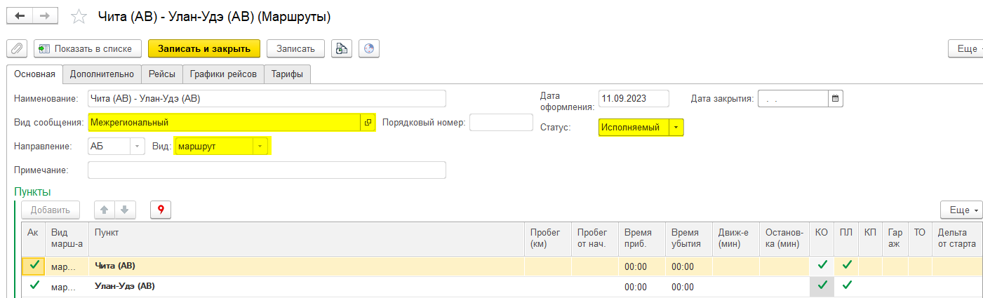 Меню Автостанция - Организация перевозок - Маршруты - Создать