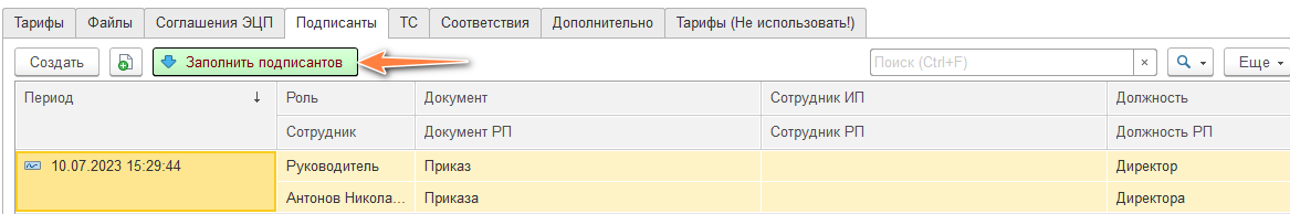 Заполните Подписантов. Сведения из этой вкладки попадают в печатную форму договора.