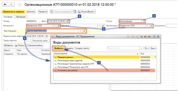 В поле «Дата» ставим дату утверждения паспорта маршрута (рейса), либо дату начала действия тарифа.
