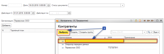 В поля «Контрагент» и «Организация» заносим нашего перевозчика.