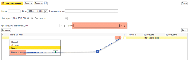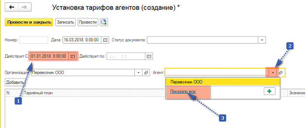Устанавливаем дату, с какого числа действует. Нажимаем на стрелочку в поле Агент. Выбираем показать все.