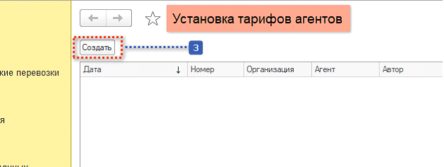 Выбираем раздел Автостанция - Подраздел Организация перевозок. Пункт «Установка Тарифов Агентов». Нажимаем на кнопку создать