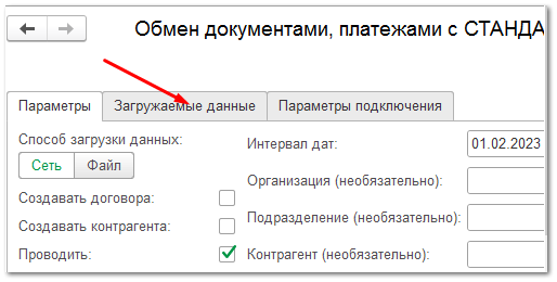 Нажмите Выполнить загрузку. Перейдите на вкладку Загружаемые данные.