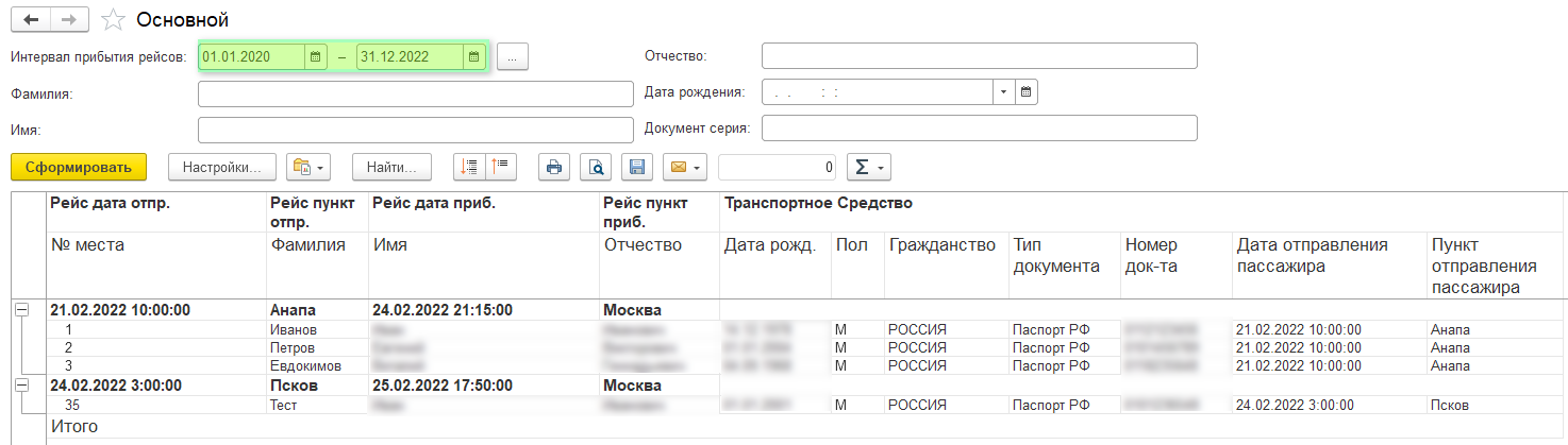 Сведения по прибывшим пассажирам