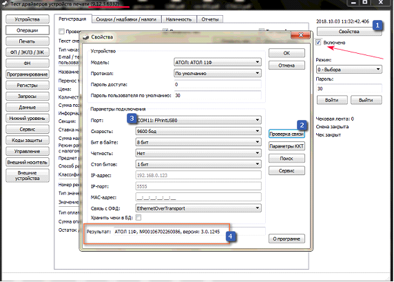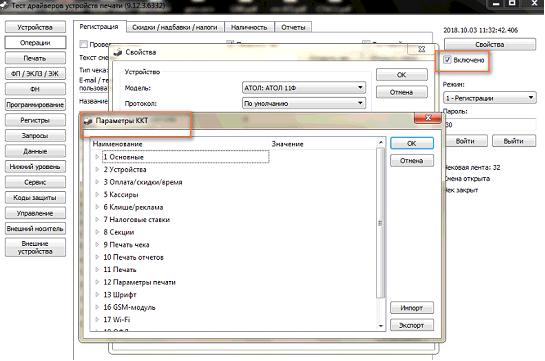 Настройки драйвера кассы: