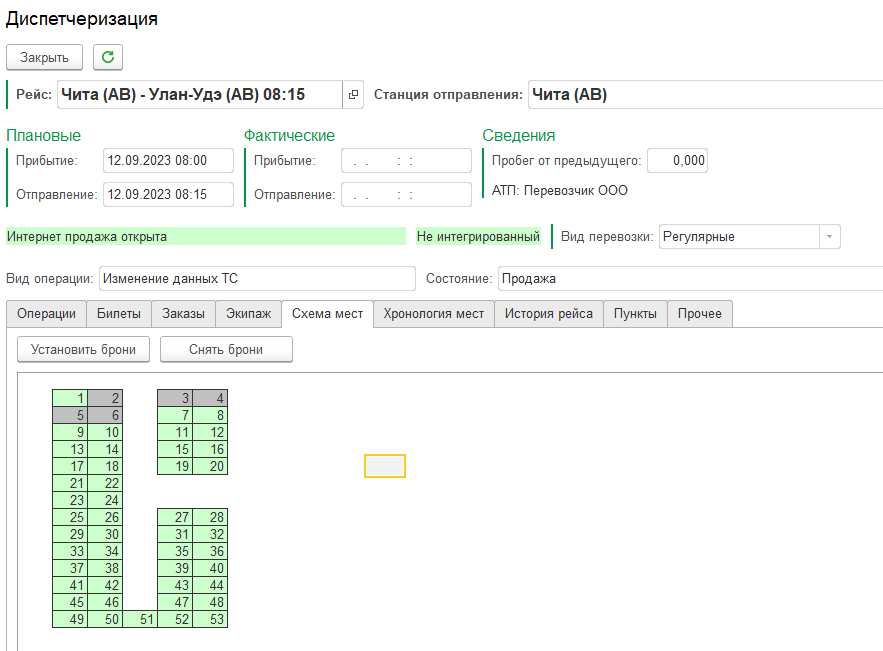 Меню Автостанция - Диспетчеризация - Диспетчеризация - Схема мест